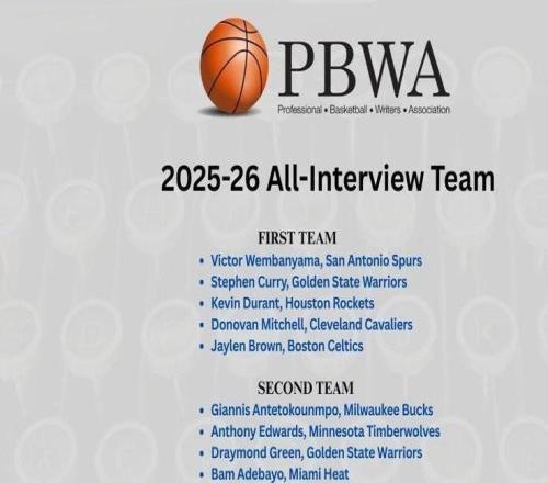 美國(guó)職業(yè)籃球作家協(xié)會(huì)(PBWA)今日宣布,文班亞馬與庫(kù)里領(lǐng)銜2025-26賽季NBA年度最佳采訪陣容。該獎(jiǎng)項(xiàng)旨在表彰在面...