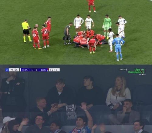 而本場比賽沒有登場的皇馬中衛(wèi)赫伊森,再次惹出爭議。在隊友阿森西奧重傷接受救治的揪心時刻,這位西班牙國腳卻在看臺打視頻電話,并且面對鏡頭嬉笑打鬧。
