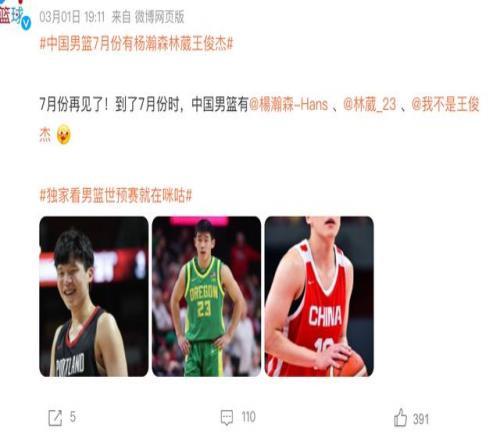 目前來看進(jìn)入到7月份,NBA以及NCAA的比賽都會全部結(jié)束。到那個時候,如果楊瀚森他們沒有其他的安排,極有可能和王俊杰還有林葳都將回歸中國男籃,中國男籃將以最強(qiáng)的陣容來迎戰(zhàn)日本男籃,我們也有信心能夠在主場將對方斬落馬下。所以目前來看,這一次我們能夠拿下三月份的比賽,對于整個中國男籃來說,應(yīng)該都是一個非常振奮而且也極為利好的事情。因?yàn)檫@兩場比賽極其艱難,熬過了這段時間,進(jìn)入到7月份我們將更加主動。