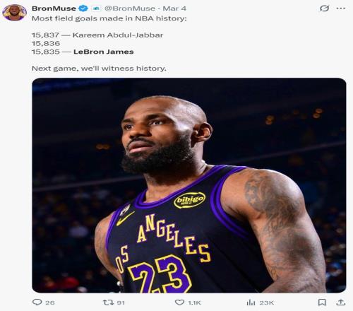 除此之外詹姆斯運動戰(zhàn)進(jìn)球已經(jīng)15835個,他距離賈巴爾的15837個只差2個,距離超過賈巴爾只差3個,下一場比賽就能超過成功成為歷史第一。