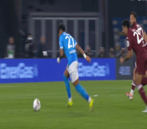 第7分鐘,斯皮納佐拉助攻,桑托斯內(nèi)切低射近角破門(mén),那不勒斯1-0都靈