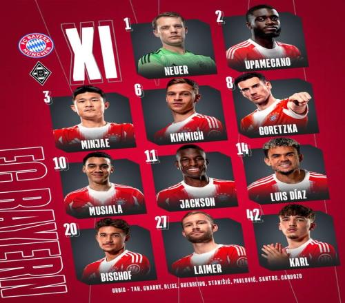 拜仁vs門興:路易斯迪亞斯、雅克松首發(fā),穆西亞拉出戰(zhàn) 懂球帝 2026-03-07 08:18:56 北京時(shí)間3月7日03:30,德甲 第25輪,拜仁慕尼黑主場迎戰(zhàn)門興格拉德巴赫,賽前雙方球隊(duì)首發(fā)名單公布如下:拜仁免費(fèi)觀看_德甲免費(fèi)觀看_雅克松免費(fèi)觀看_拜仁高清在線_德甲高清在線_雅克松高清在線 拜仁 德甲 雅克松 穆西亞拉 路易斯-迪亞斯 門興格拉德巴赫隊(duì) 上一篇: 迪亞斯本賽季聯(lián)賽已打入14球,創(chuàng)五大聯(lián)賽生涯單賽季新高 下一篇: 曼聯(lián)有意引進(jìn)前曼城青訓(xùn)球員,與藍(lán)月亮競逐多特中場