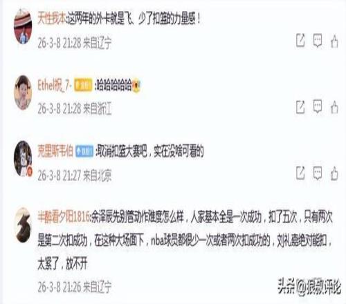 余澤辰先別管動(dòng)作難度怎么樣,人家基本全是一次成功,扣了五次,只有兩次是第二次扣成功,在這種大場(chǎng)面下,nba球員都很少一次或者兩次扣成功的,劉禮嘉絕對(duì)能扣,太緊了,放不開(kāi)。