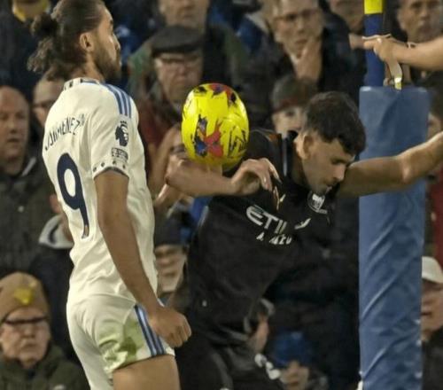 這種精細(xì)化的處理方式意味著,像曼城的馬特烏斯-努內(nèi)斯在上個(gè)月客場(chǎng)戰(zhàn)勝利茲聯(lián)的比賽中在禁區(qū)內(nèi)手球(下圖)這樣的情況,并不會(huì)被判罰點(diǎn)球。