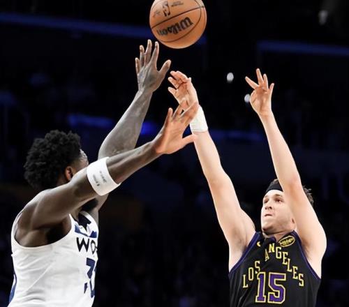湖人和森林狼是今天最晚結(jié)束的場(chǎng)次,詹姆斯因傷繼續(xù)缺陣,湖人派出了東契奇+里夫斯+艾頓+八村壘+斯馬特的首發(fā)陣容,森林狼派出了愛德華茲+蘭德爾+麥克丹尼爾斯+迪溫琴佐+戈貝爾的首發(fā)。首節(jié)湖人的手感不佳,單節(jié)只有16分,森林狼也沒有好到哪里,只拿到了21分。次節(jié)湖人的進(jìn)攻回暖,東契奇命中兩記三分,艾頓在內(nèi)線連續(xù)終結(jié),8投6中拿到了12分5籃板,他的強(qiáng)硬幫助湖人在半場(chǎng)結(jié)束的時(shí)候抹平了分差。