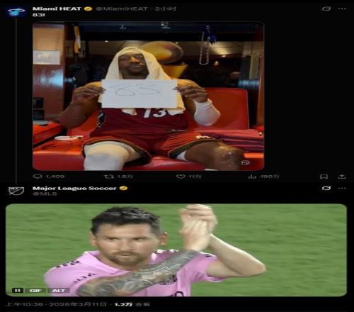比賽結束后,邁阿密熱火官方社交媒體曬出了阿德巴約手舉“83”字樣的慶祝照,美國職業(yè)足球大聯盟(MLS)官推隨即評論,配上邁阿密國際球星梅西鼓掌致意的動圖,以此向阿德巴約送上祝賀。