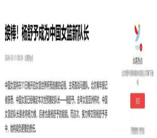 《接棒!楊舒予成為中國(guó)女籃新隊(duì)長(zhǎng)》北青熱點(diǎn)