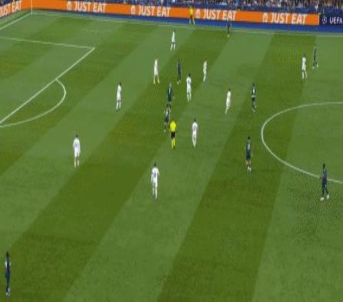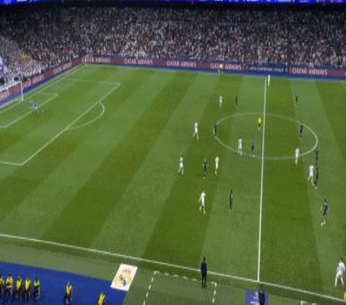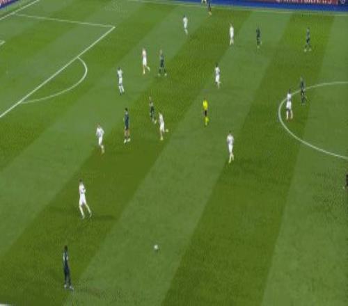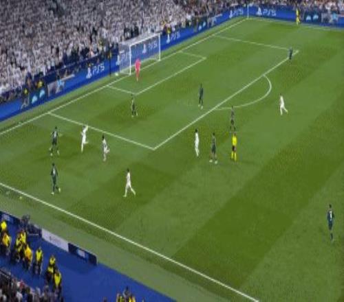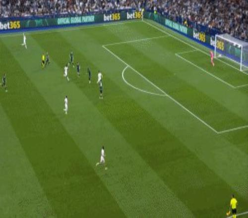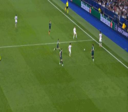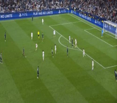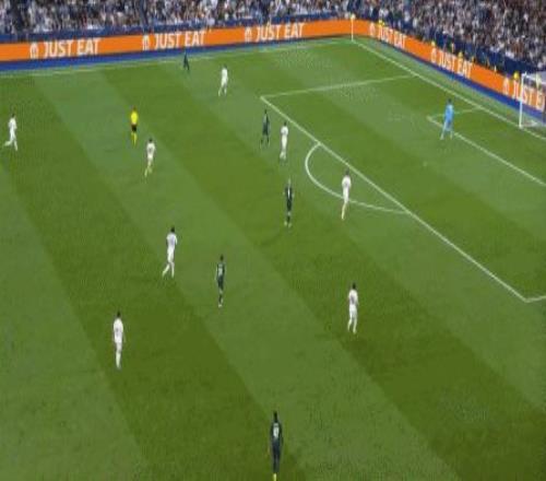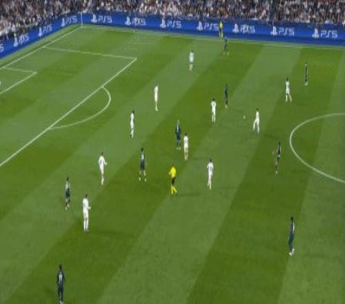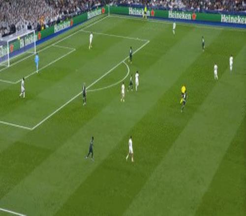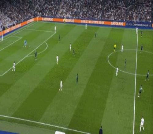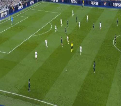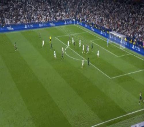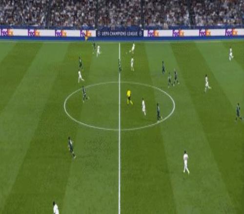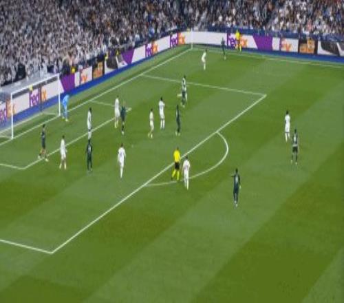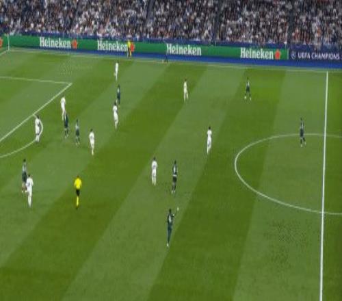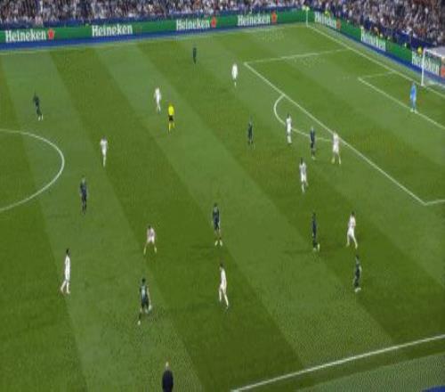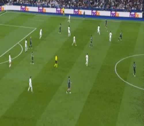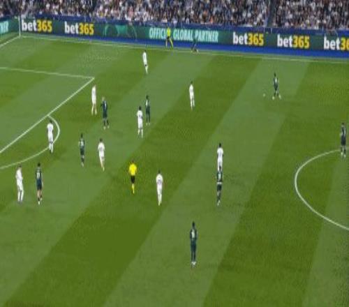 所以在下半場,皇馬的表現依然穩(wěn)健,還是通過人數足夠的防守來構筑基礎,在此之上進行次數有限,但威脅不小的反擊,效果依然不錯: