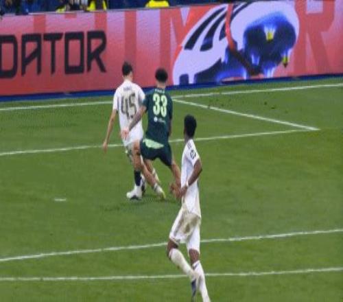 然后就在這次進攻的角球防守里,皇馬抓住胡桑諾夫和羅德里的連接失誤,讓維尼修斯直接用反擊制造點球: