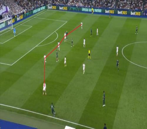 于是,通過壓縮空間來限制住曼城的進攻效率之后,皇馬的要緊任務就變成了打出反擊,尤其是要在這種無中鋒的思路下打出反擊。