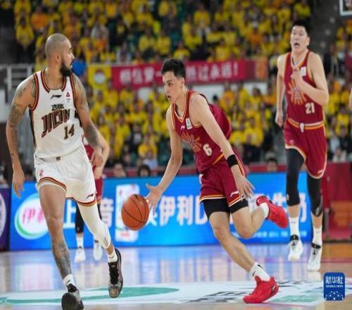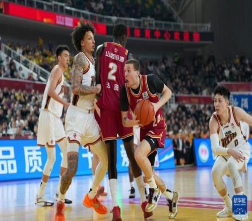3月11日,山西汾酒隊球員賈明儒(左二)在比賽中運球突破。新華社記者 楊晨光 攝