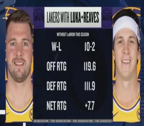 數(shù)據(jù)顯示,本賽季至今當(dāng)詹姆斯缺席而東契奇+里夫斯同時(shí)出戰(zhàn)時(shí),湖人表現(xiàn)如下: