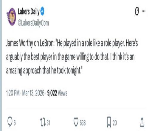 湖人名宿沃西賽后更是一針見血的表示:“詹姆斯打得像一個(gè)角色球員一樣,作為聯(lián)盟中最出色的球員之一,卻愿意接受這樣的改變,我認(rèn)為他今晚的態(tài)度真的非常了不起?!?/p>
