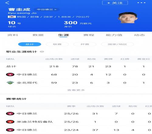 2025年8月,在缺席長(zhǎng)達(dá)15個(gè)月后,曹圭成終于迎來(lái)復(fù)出,本賽季代表中日德蘭出戰(zhàn)32場(chǎng)比賽,打進(jìn)7球,同時(shí)還重返韓國(guó)隊(duì)。