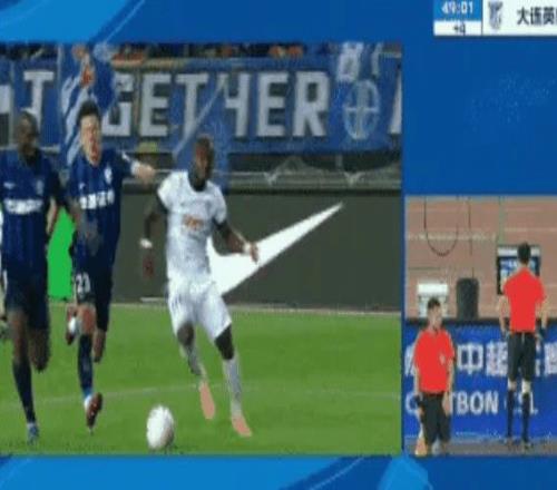 上半場快結(jié)束的時候,阿奇姆彭突破到禁區(qū)被撞倒,裁判回看視頻后確定是點球!