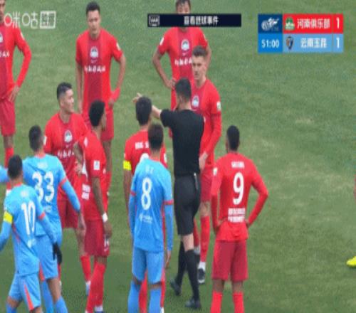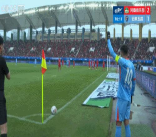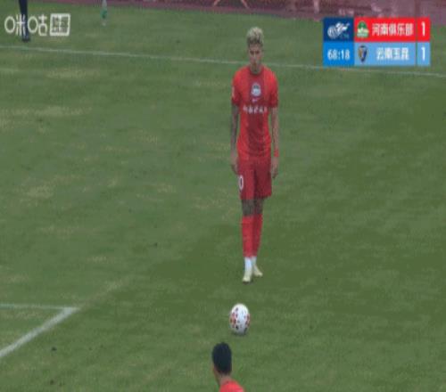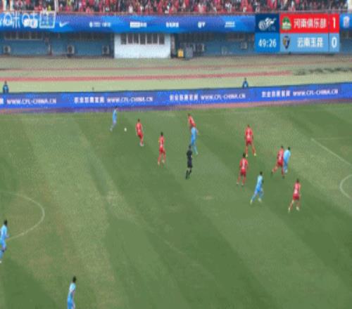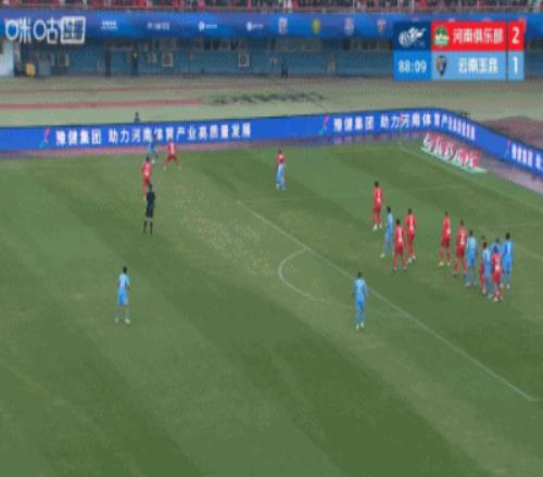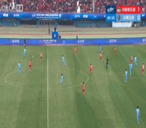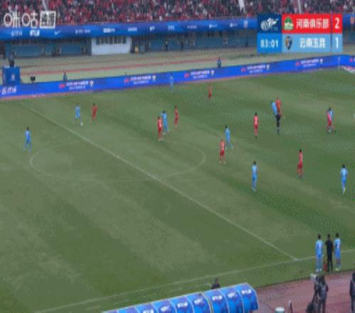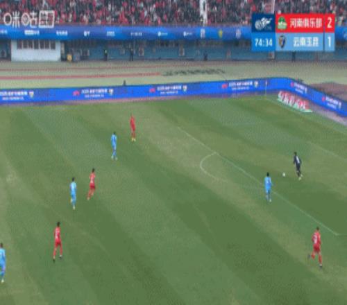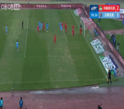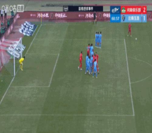 第69分鐘,納薩里奧任意球開出,克萊伯頭球一蹭不慎自擺烏龍!河南2-1云南玉昆!↓