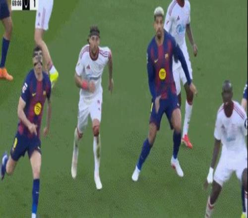 第67分鐘,亞馬爾、阿勞霍、卡薩多登場,坎塞洛、巴爾德吉、貝爾納爾下