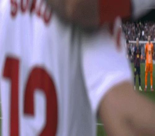 第45+3分鐘,胡安盧-桑切斯傳中,奧索端射破門扳回一球,塞維利亞1-3巴薩
