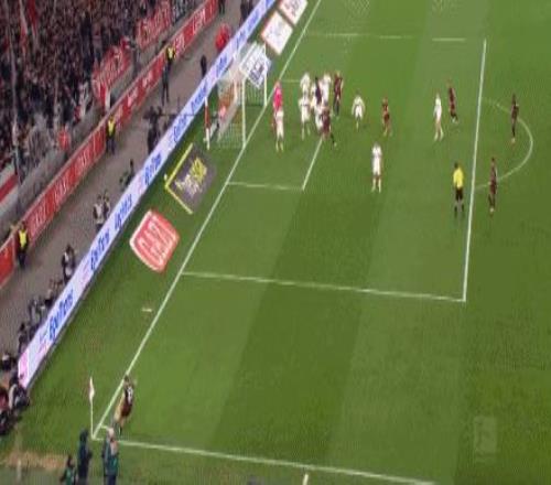 第90+2分鐘,萊比錫左路起球,奧爾班頭球擊中立柱