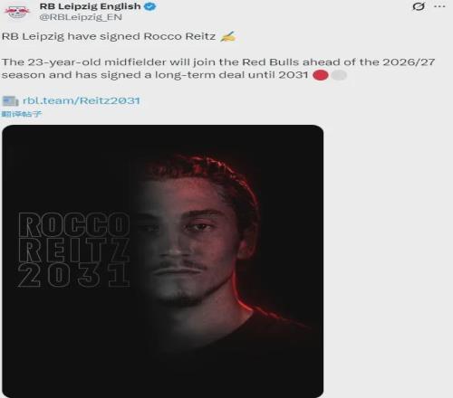 官方:萊比錫紅牛宣布和門興格拉德巴赫就羅科-賴茨的轉(zhuǎn)會達成了協(xié)議,這名23歲的中場將在今年夏天正式完成轉(zhuǎn)會,并且他將簽下一份2031年到期的合同。