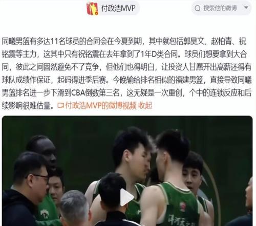 賽后媒體人付政浩跟進了報道,并給出了另外一個角度來分析這次沖突:同曦男籃有多達11名球員的合同會在今夏到期,其中就包括郭昊文、趙柏青、祝銘震等主力,這其中只有祝銘震在去年拿到了1年D類合同。球員們想要拿到大合同,彼此之間固然避免不了競爭,但他們也得明白,讓投資人甘愿開出高薪還得有球隊成績作保證,起碼得進季后賽。