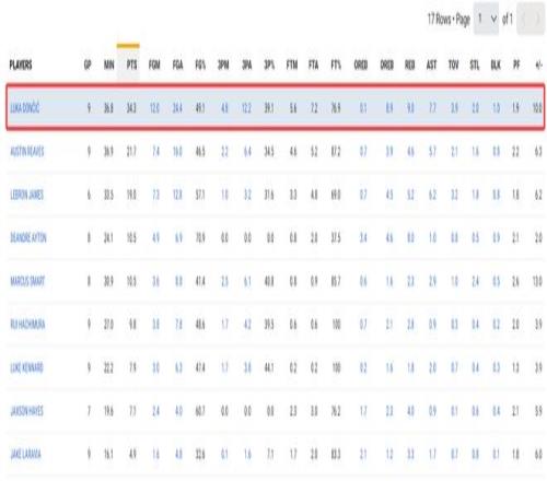 湖人隊(duì)這一波9戰(zhàn)8勝,東契奇場(chǎng)均36.3分鐘,拿到34.3分9籃板7.7助攻2搶斷1蓋帽,命中率49.1%,三分命中率39.1%,場(chǎng)均命中4.3個(gè)三分球,不得不說東契奇在分手后的確猛到炸裂。