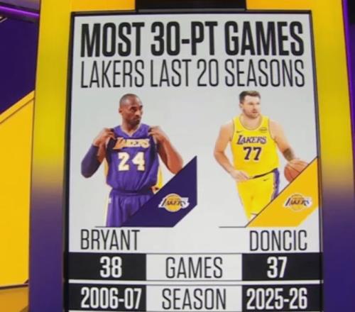 東契奇本賽季已經(jīng)拿到第37次30+,過去20個(gè)賽季,僅次于科比06-07賽季的38次(05-06賽季的科比有56次30+是湖人隊(duì)史紀(jì)錄),東契奇本賽季場(chǎng)均32.9分也是聯(lián)盟的得分王,他將成為科比后湖人隊(duì)史又一位得分王。