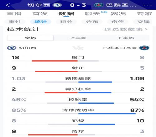 效率碾壓,巴黎30切爾西全場數(shù)據(jù):射門818,射正59 直播吧 2026-03-18 07:31:40 體育播報(bào)3月18日宣 在歐冠淘汰賽次回合,巴黎3-0擊敗切爾西,以下為雙方全場數(shù)據(jù)對比:切爾西vs巴黎射門:18-8射正:9-5預(yù)期進(jìn)球:1.03-1.09得分機(jī)會(huì):2-2控球率:46%-54%傳球成功率:85%-87%犯規(guī):8-10角球:9-3足球免費(fèi)觀看_切爾西免費(fèi)觀看_巴黎圣日耳曼免費(fèi)觀看_足球高清在線_切爾西高清在線_巴黎圣日耳曼高清在線 足球 切爾西 巴黎圣日耳曼 法甲 英超 上一篇: 皇馬第41次打進(jìn)歐冠14決賽,賽事所有球隊(duì)中最多 下一篇: 羅伯遜:說起逆轉(zhuǎn)想起對陣巴薩,但上次不被看好這次被看好