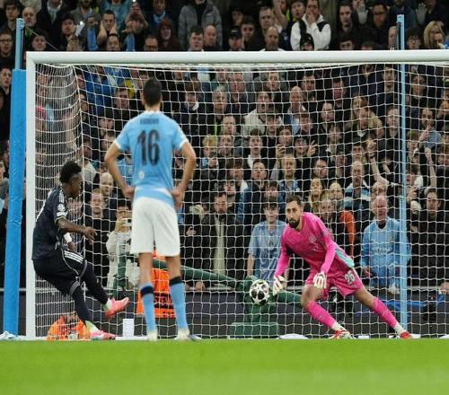 比賽最后時刻,巴爾韋德傳球,維尼修斯兩連擊破門,但是越位在先。——不過很快的,維尼修斯又進球,這回是楚阿梅尼的助攻。鏡頭給到瓜迪奧拉,一臉落寞。