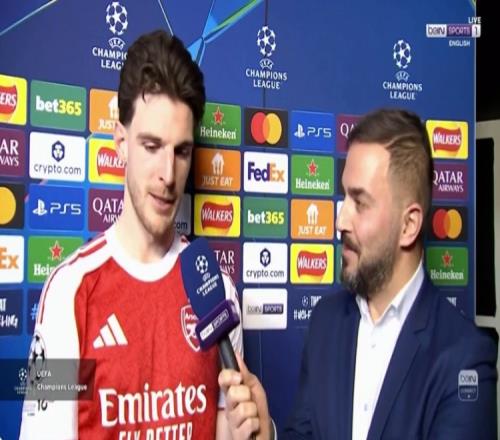 體育播報3月18日宣 今天凌晨歐冠1/8決賽次回合,阿森納2-0擊敗勒沃庫森,最終以總比分3-1晉級。阿森納中場賴斯在賽后接受了記者采訪。