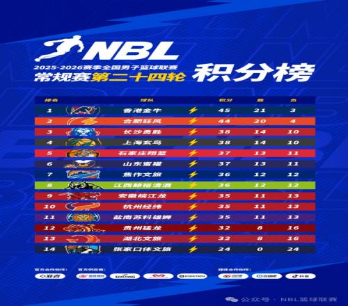 2025-2026賽季NBL常規(guī)賽第二十四輪比賽于3月17日全部戰(zhàn)罷。