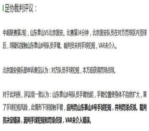 3月17日晚,中國(guó)足協(xié)一紙?jiān)u議,把京魯大戰(zhàn)的“暗雷”給引爆了。中超第二輪京魯大戰(zhàn),比賽第34分鐘,馬德魯加禁區(qū)內(nèi)手臂揚(yáng)起,皮球結(jié)結(jié)實(shí)實(shí)地砸了上去。主裁判麥麥提江沒看見,VAR唐順齊也沒吭聲。三天后,足協(xié)官方認(rèn)定:漏判點(diǎn)球,VAR未介入錯(cuò)誤。泰山隊(duì)罕見地成了“獲利方”。