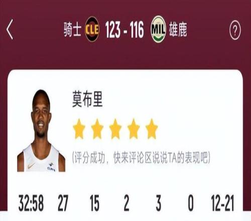 由于雄鹿缺少字母哥坐鎮(zhèn)籃下,莫布里完全掌控籃板拼搶與護(hù)框大權(quán),既能持球強(qiáng)攻取分,又能拼下前場板完成二次終結(jié),3次封蓋更是直接掐滅雄鹿多次內(nèi)線強(qiáng)攻企圖,騎士內(nèi)線得分以56比34大幅領(lǐng)先,莫布里功不可沒。