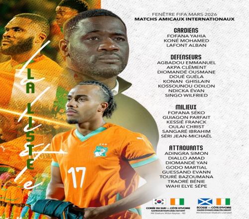 體育播報(bào)3月18日宣 科特迪瓦公布最新一期國家隊(duì)名單,本月國際比賽日球隊(duì)將與韓國、蘇格蘭交手。