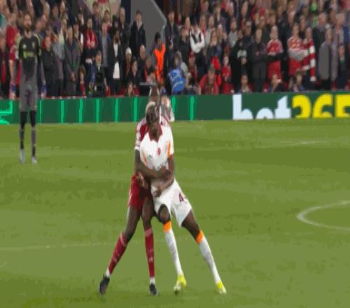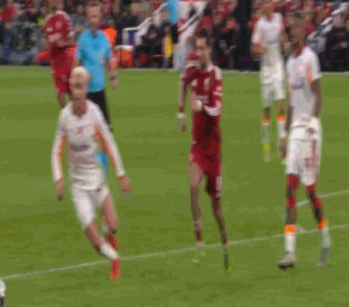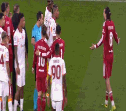 第90分鐘,麥卡利斯特破門,但是主裁判罰范戴克犯規(guī)在先