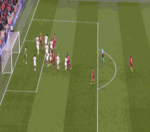 第25分鐘,麥卡戰(zhàn)術(shù)角球助攻索博破門,利物浦1-0扳平總比分