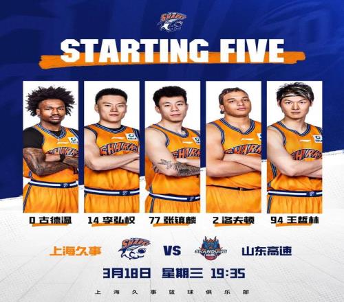 此役大鯊魚先發(fā)五人與上一輪面對青島沒有任何變化,依舊為:古德溫、李弘權、張鎮(zhèn)麟、洛夫頓和王哲林。