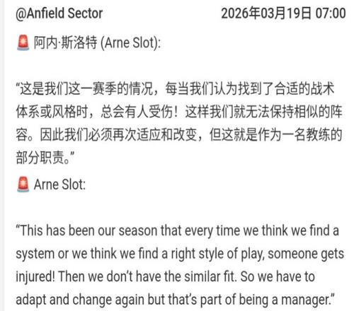 這一變化不僅回應(yīng)了球隊(duì)陣容老化、反擊效率下滑的問題,也讓像維爾茨、索博斯洛伊、麥卡利斯特等技術(shù)型中場(chǎng)有了更大發(fā)揮空間。新陣型強(qiáng)調(diào)無(wú)球跑動(dòng)、快速傳遞與位置輪轉(zhuǎn),更利于年輕球員融入體系。而活力大幅下滑的薩拉赫則可以發(fā)揮無(wú)球跑位的經(jīng)驗(yàn),并更靠近生力軍埃基蒂克給后者送出妙處,兩周后伊薩克回歸,這套打法會(huì)更加立體。