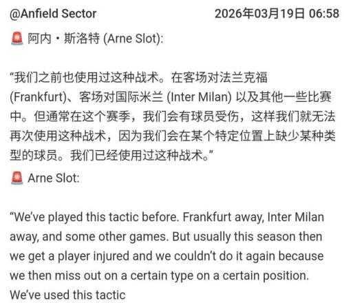 斯洛特賽后表示他踢國(guó)米、法蘭克福等球隊(duì)就用過(guò)這套,但因?yàn)橐了_克、右邊后衛(wèi)輪流傷病,就沒法持續(xù),他也承認(rèn)這套其實(shí)“挺合適”的。