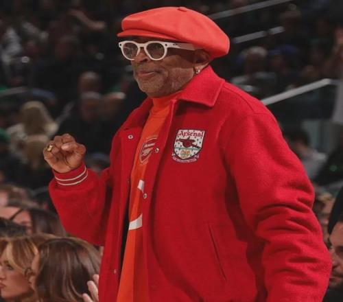 美國著名導演斯派克李在觀看紐約尼克斯的比賽時穿上了阿森納的服飾。