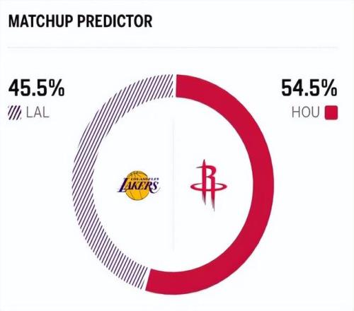 賽前,美媒ESPN對本場比賽進行了勝率預測,湖人隊勝率僅有45.5%,略占劣勢,火箭勝率則為54.5% 。