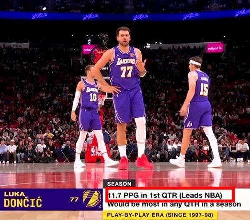 首節(jié)比賽,東契奇9投4中,三分6中3砍下13分3籃板3助攻1搶斷,本賽季首節(jié)場均11.7分,創(chuàng)造歷史(有記錄以來)單節(jié)場均最高得分。