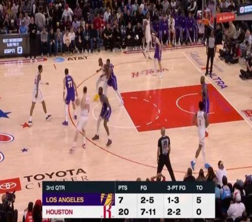 第三節(jié)風(fēng)云突變,火箭轟出20-7攻擊波,失誤對比湖人5次火箭0次,火箭一舉追平反超,扭轉(zhuǎn)了局勢。