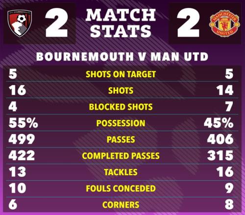 朱尼爾·皮魯皮將點球罰入,幫助伯恩茅斯2-2再次扳平曼聯(lián)。少打一人的紅魔只好稍微回收,確保能帶走一分,這場「魔櫻大戰(zhàn)」最終再次以平局結(jié)束。