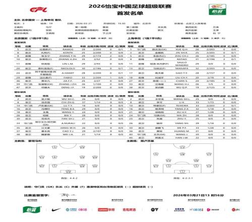 國安vs申花:4外援PK3外援,張稀哲、賈非凡、汪海健首發(fā) 懂球帝 2026-03-22 00:42:11 北京時間3月21日15:30,中超第3輪,京滬德比展開較量,北京國安主場對陣上海申花。賽前首發(fā)公布。國安免費觀看_中超免費觀看_張稀哲免費觀看_國安高清在線_中超高清在線_張稀哲高清在線 國安 中超 張稀哲 賈非凡 汪海健 上海申花 年輕球員 上一篇: 上港本輪剛輸給大連英博,蒯紀(jì)聞賽后就做出重要決定,贏得點贊 下一篇: 京滬德比前瞻:傳統(tǒng)豪門對決激烈加倍,前鋒效率如何是取勝之匙