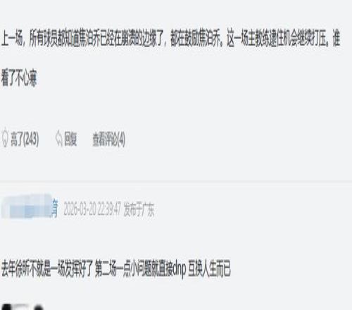 球迷質(zhì)疑杜鋒:江蘇連個2米1的都沒有,不知道為什么不上焦泊喬?他也不慢,還有身高;上一場,所有球員都知道焦泊喬已經(jīng)在崩潰的邊緣了,都在鼓勵焦泊喬。這一場主教練逮住機會繼續(xù)打壓。誰看了不心寒!