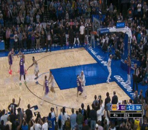 5.5秒領(lǐng)先2分握有球權(quán),魔術(shù)贏球形勢一片大好,但他們出現(xiàn)了關(guān)鍵的邊線球失誤,班凱羅被詹姆斯切球,裁判將球權(quán)判給湖人。魔術(shù)選擇用最后一次暫停進(jìn)行挑戰(zhàn),但裁判經(jīng)過漫長的錄像回放后依然無法找到改判證據(jù),湖人獲得了4.7秒絕殺的機(jī)會。