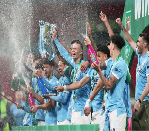 這是瓜迪奧拉執(zhí)教生涯贏得的第五座英格蘭聯(lián)賽杯。2018年他首次在英格蘭捧起這座獎杯,隨后更是史無前例地完成了四連冠。擊敗阿森納后,他又把第五枚聯(lián)賽杯冠軍獎牌收入囊中。