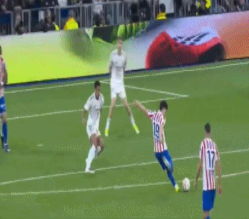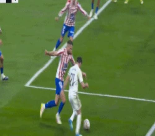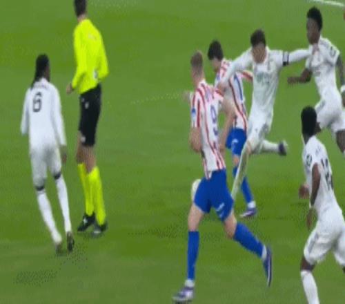 比賽開打僅3分鐘,皇馬就通過威尼修斯的左路強突制造險情,隨后巴爾韋德的暴力遠射擊中立柱。伯納烏的節(jié)奏從開場就被拉到極限,但真正先破門的卻是馬競。