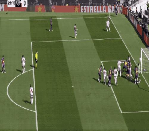 好在4分鐘后,坎塞洛開出角球,阿勞霍高高躍起頭槌破門,巴薩1-0打破僵局。